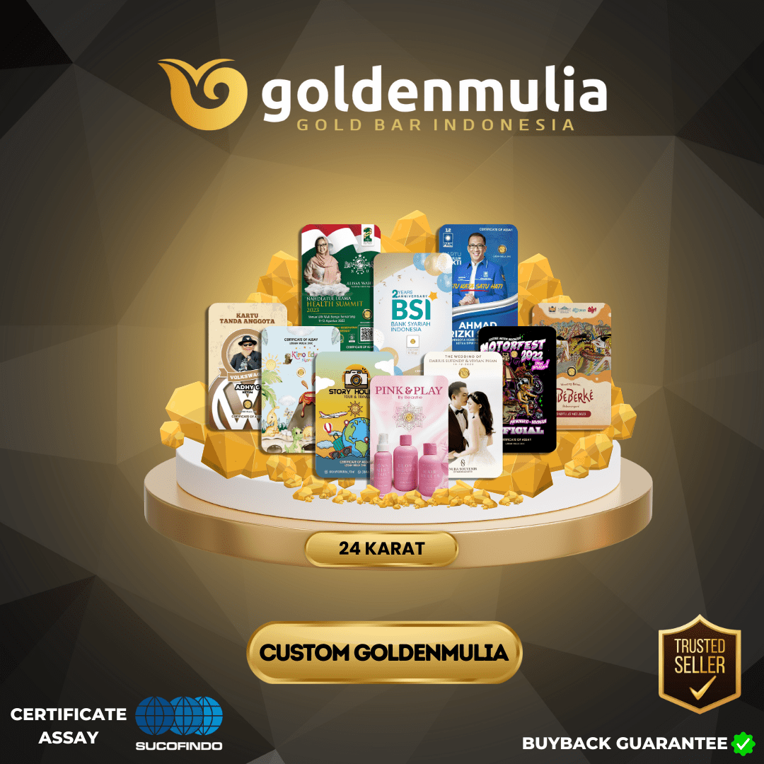 Berbagai series dan desain kemasan emas batangan menarik bahkan dapat dikostumisasi sesuai kebutuhan serta keinginan sebagai sarana menabung emas ataupun berbagi.