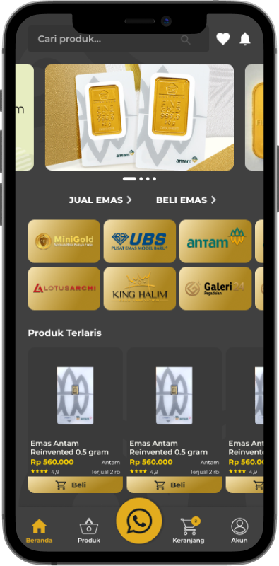 Pertama di Indonesia, kami mendevelop aplikasi yang memudahkan untuk transaksi jual beli logam mulia secara online dalam.
