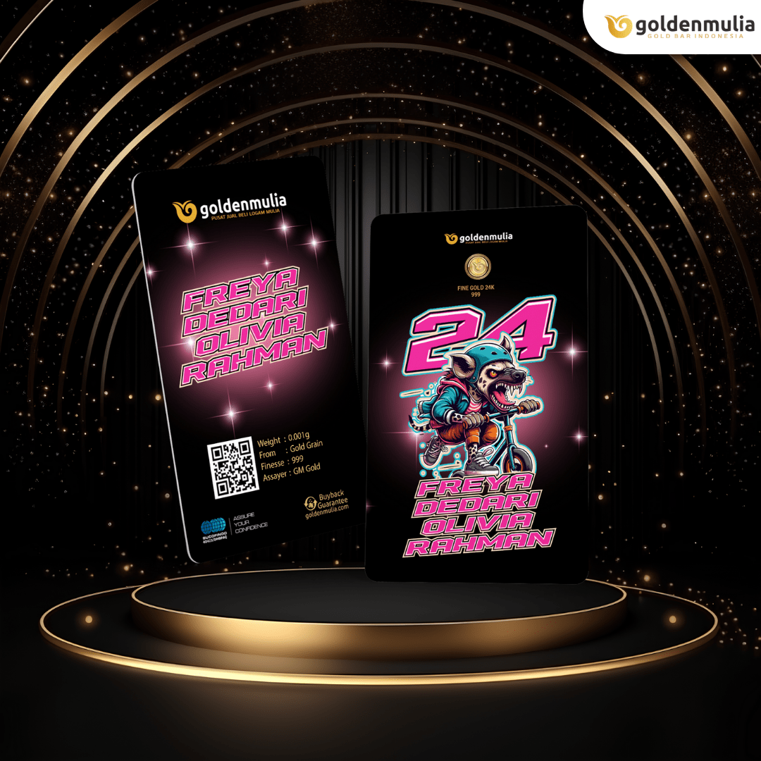 Goldenmulia merupakan merk Logam Mulia 24K berbentuk fisik dengan uji berkala dan bersertifikat Sucofindo tersedia mulai dari gramasi 0.001 Gr | 0.002 Gr | 0.005 Gr | 0.01 Gr | 0.02 Gr | 0.05 Gr | 0.1 Gr | 0.25 Gr